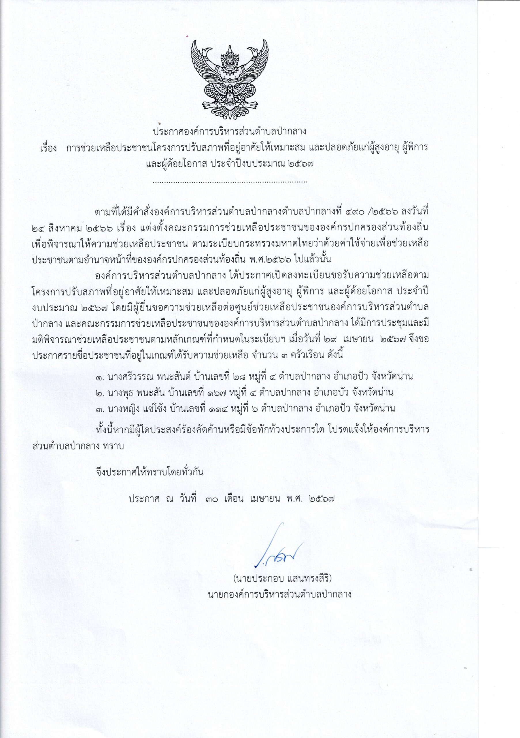 ประกาศ อบต.ป่ากลาง เรื่อง การช่วยเหลือประชาชนโครงการปรับสภาพที่อยู่อาศัยให้เหมาะสม และปลอดภัยแก่ผู้สูงอายุ ผู้พิการ และผู้ด้อยโอกาส ประจำปีงบประมาณ 2567 ข่าวประชาสัมพันธ์ ประกาศ April 30, 2024May 28, 2024meiLeave a Comment on ประกาศ อบต.ป่ากลาง เรื่อง การช่วยเหลือประชาชนโครงการปรับสภาพที่อยู่อาศัยให้เหมาะสม และปลอดภัยแก่ผู้สูงอายุ ผู้พิการ และผู้ด้อยโอกาส ประจำปีงบประมาณ 2567